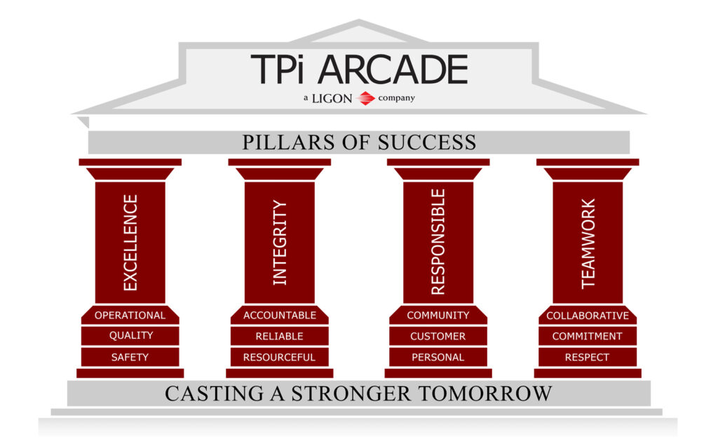 At TPI Arcade, we’re more than a manufacturer. We’re a team committed to Casting a Stronger Tomorrow. Our success is built on four pillars that guide everything we do: